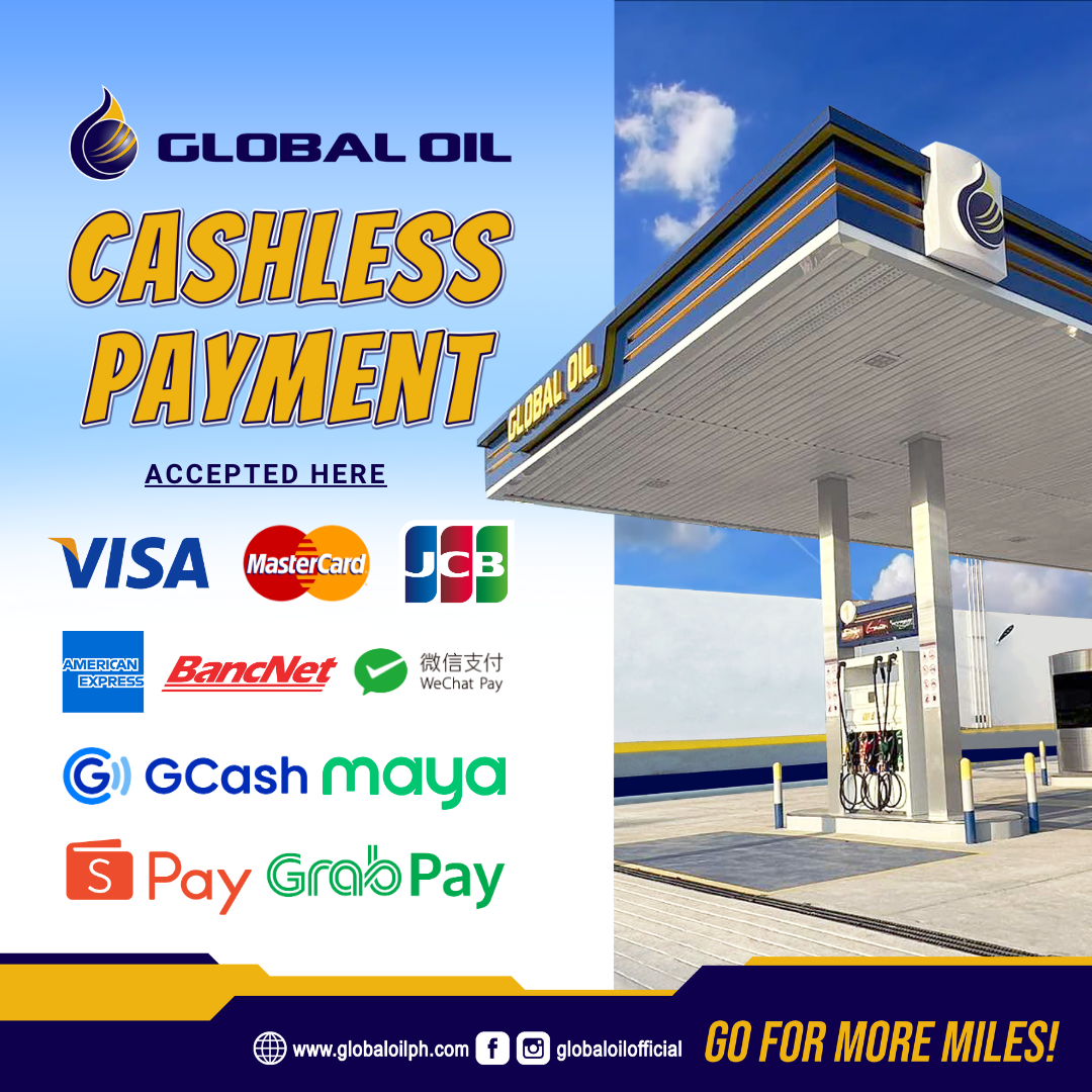 Global Oil Cashless Payment 2024 May 17, 2024 17 May Cashless Payment Accepted Here for your hassle-free transaction. What are you waiting for? Gas up now at Global Oil using your finger tip. We accept Cashless payments in all Global Oil Branches Nationwide.