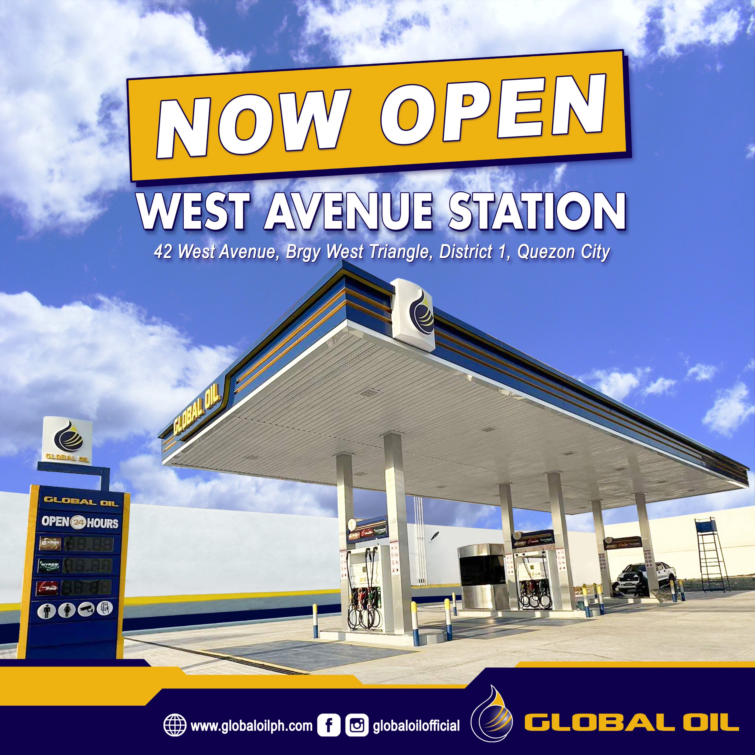 Global Oil West Avenue Station Soft Opening! April 20, 2024 20 Apr Turn on your engines and make your way to West Avenue Global Oil. 42 𝗪𝗲𝘀𝘁 𝗔𝘃𝗲𝗻𝘂𝗲, 𝗕𝗿𝗴𝘆 𝗪𝗲𝘀𝘁 𝗧𝗿𝗶𝗮𝗻𝗴𝗹𝗲, 𝗗𝗶𝘀𝘁𝗿𝗶𝗰𝘁 1, 𝗤𝘂𝗲𝘇𝗼𝗻 𝗖𝗶𝘁𝘆. Take advantage of exciting deals and amazing freebies to add even more memorable touches to your day! See you there at our Grand Opening soon! Go Gas up now